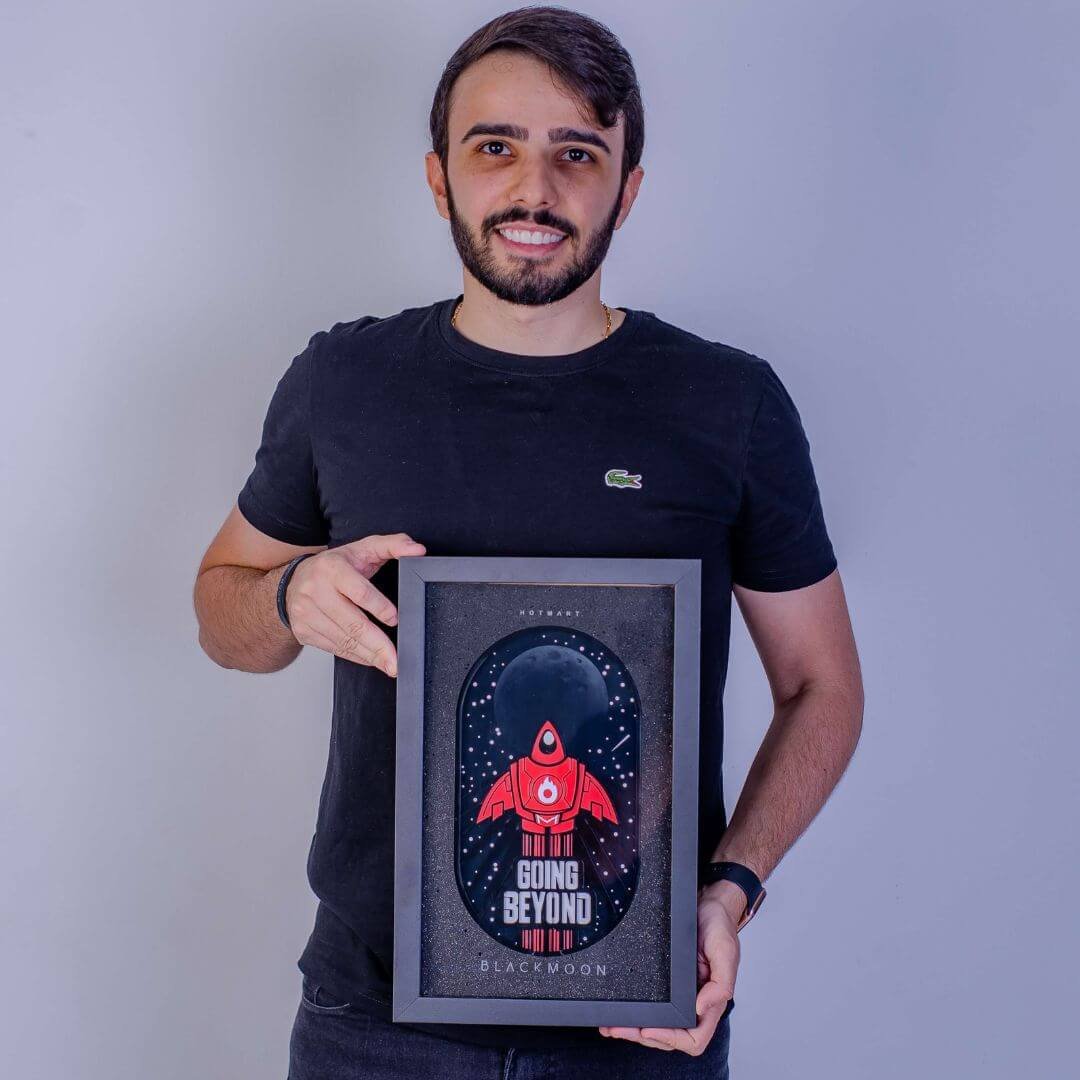 Ele não apenas construiu um negócio sólido em renda recorrente em dólar, como também recebeu os prêmios Hotmart Black e Black Moon, reconhecimentos que só os maiores players do mercado conquistam.